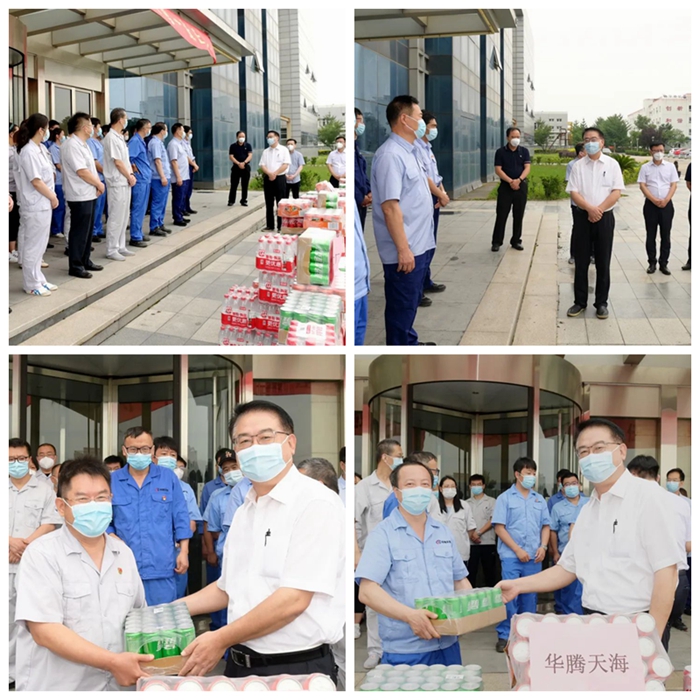 7月6日上午,陳宇一行來到集團大興化工園區(qū),慰問園區(qū)內(nèi)華騰化工、華騰天海、試劑所、化工廠4家企業(yè)的干部職工。陳宇對一線職工冒酷暑、戰(zhàn)高溫,認真負責的工作態(tài)度給予了高度肯定,對4家企業(yè)疫情防控、防汛、防暑降溫措施落實情況進行了督促和檢查。