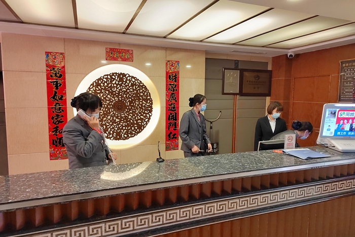 入住當天,為快速辦理相關手續,賓館管理人員來到接待一線,確保選房、做卡、核驗身份證一氣呵成,高效和優質的服務贏得了記者的贊許。黨員和積極分子在完成好本職工作的同時,主動到門口接待入住記者,為他們提行李、領路,讓他們享受到了一站式到達的服務。