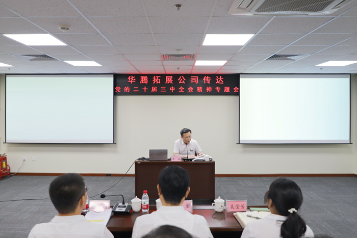 7月31日,華騰拓展公司黨總支召開學習貫徹黨的二十屆三中全會精神專題宣講報告會,北京化工集團總經理助理,華騰拓展公司黨總支書記、董事長李泳作宣講報告。李泳圍繞學習貫徹黨的二十屆三中全會精神,結合集團“231”戰略布局、三個“北化”發展方向以及華騰拓展公司工作實際,明確了當前及今后一段時期的重點工作、重點任務。