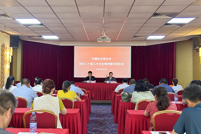 8月5日,華騰東光黨總支召開學習貫徹黨的二十屆三中全會精神專題宣講報告會,黨總支書記、董事長、總經理宋鋼作宣講報告。