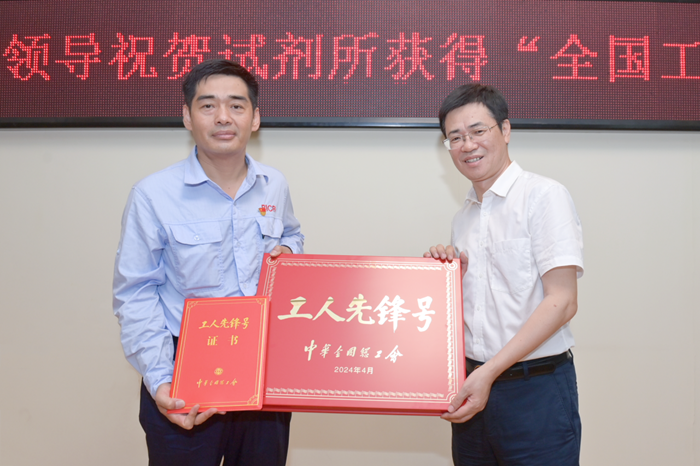 楊旭輝一行來到華騰科技園后,直奔職工一線,親手將防暑降溫物品送到職工手中,為他們“送清涼”。而后深入化工廠彩粉車間、分裝車間,試劑所甲類車間,入駐園區的液流電池實驗室項目,華騰化工甲類庫等生產經營現場。深入了解華騰科技園現狀及入駐企業情況,華騰科技園一體化方案推進實施成效,華騰科技園總體發展思路,特別是結合大興區產業規劃、集團生物醫藥孵育孵化及智造“北化模式”、危化品安全監管與高質量發展實施方案的發展思路,華騰天海公司總體工作情況等,要求園區企業從市級、大興區區級、集團公司3個層面,從生物醫藥、危化品安全服務、化工新材料3個產業方向落實園區定位,進一步落實園區功能整合、企業梳理及組織整合,另對全面履行安全生產主體責任,提升園區服務能力水平等工作進行具體部署。楊旭輝還向榮獲“全國工人先鋒號”的試劑所質量檢驗部頒牌,并向他們表示熱烈祝賀。