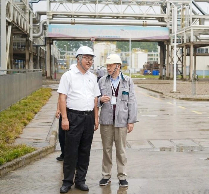 9月25日,北京化工集團黨委書記、董事長陳宇,黨委副書記吳瑞峰專程來到江蘇泰興,實地調研京騰昊樺安全生產情況。陳宇一行走進生產裝置現場,仔細了解現場生產和安全運行情況。