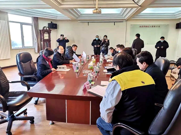 檢查組一行首先聽(tīng)取了北化集團(tuán)所屬華騰化工公司總經(jīng)理何曉春所作的工作匯報(bào);實(shí)地檢查了甲類庫(kù)房安全管理情況。