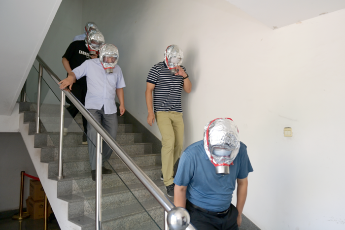 本次演練活動(dòng)以“人人講安全,個(gè)個(gè)會(huì)應(yīng)急”為主題,研究制定演習(xí)方案,確保應(yīng)急演習(xí)符合實(shí)際要求,演練過(guò)程中,啟動(dòng)了大廈新成立的微型消防站,隊(duì)員們穿戴整齊,動(dòng)作專(zhuān)業(yè)標(biāo)準(zhǔn),完成了演練設(shè)定的各項(xiàng)規(guī)定動(dòng)作,在疏散過(guò)程中,總部為干部職工配備了過(guò)濾式消防自救呼吸器供大家體驗(yàn)。