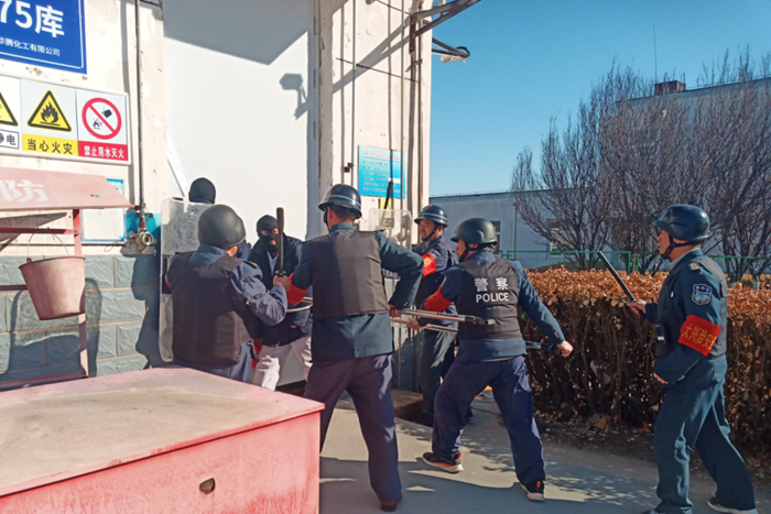 華騰科技園作為全市應急物資、化工產品重要集散地,全國兩會前夕,華騰化工從安全保衛(wèi)、安全管理、信訪穩(wěn)定等多個方面進行了全面部署和系統摸排。領導班子成員帶頭到重點部位安全檢查;組織公司中控室人員進行“周界防侵入系統”等專業(yè)培訓;對易制爆庫房進行封閉管理并張貼封條,聯合屬地派出所組織開展甲類庫反恐應急演練;認真落實集團信訪維穩(wěn)、接訴即辦相關工作要求,切實將安全保穩(wěn)定工作落實落地。
